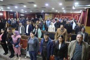 حضر الجلسة الرئاسة المشتركة للمجلس التشريعي پإقليم الجزيرة السيد ” حكمت حبيب ” والسيدة ” آريا ملا احمد ” ونواب الرئاسة المشتركة،و الرئاسة المشتركة للمجلس التنفيذي بإقليم الجزيرة السيد”طلعت يونس” و السيدة “نظيرة كورية” ونائبة الرئاسة المشتركة للمجلس التنفيذي السيدة “آهين سويد”و مستشارة الادارة الذاتية في إقليم الجزيرة السيدة” جيهان خليل” و الرئيس المشترك لهيئة الشؤون الإجتماعية والعمل السيد” محمد هاشم البراك”وعضو الهيئة الرئاسية لحزب الاتحاد الديمقراطي السيدة “فوزة يوسف” و الرئيس المشترك لهيئة التربية والتعليم السيد”مصطفى فرحان” بالإضافة الى حضور 98 من أعضاء المجلس التشريعي.