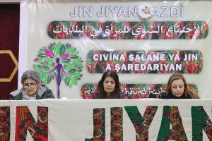 Jinên şaredariyan bi dirûşmeya “Jin jiyan e azadî” civîna xwe ya salane lidar xist. Civîn li hola civînan a Encûmena Zagonsaz a li bajarê Amûdê hate lidarxistin.