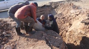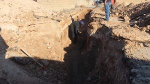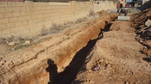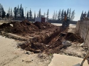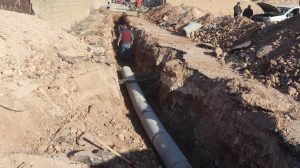 وأزال العمال القساطل القديمة بواسطة الآليات، ووضعوا قساطل بطول 25 متر وقطر 30 سم.