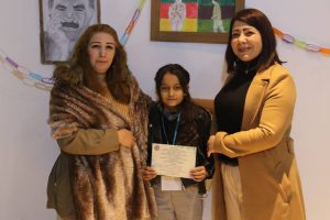 شارك اليوم وفد من منسقية المرأة في إقليم الجزيرة بمعرض الرسم للاطفال الذي نظمته لجنة حماية الطفل في منظمة شلير تحت شعار “لاتستطيعون حجب شمسنا” وذلك في مركز محمد شيخو لثقافة والفن بمدينة قامشلو.