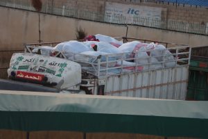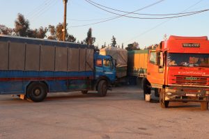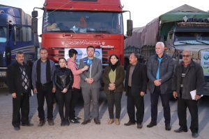 حيث تم تجهيز عشرة قاطرات تحمل أكثر من مئة طن تحتوي على بطانيات وإسفنج ولحف و سجادات ومستلزمات المطبخ بالإضافة الى الألبسة و الاحذية، كما تحتوي ايضاً مواداً غذائية كحليب الأطفال والطحين ومواد طبية.