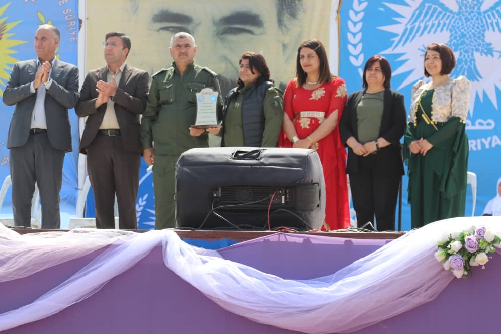 تلت الكلمة تقديم درع تهنئة من قبل المجلي التنفيذي لقوات الأسايش تقديرا لجهودهم المبذولة.