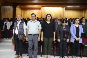 وأحيت اليوم الرابع من تشرين الأول/ أكتوبر أكادمية الجنولوجي سنوية استشهاد الأكاديمية ناكيهان آكارسال في قاعة جامعة روج افا تحت شعار “rojên jinerjiya yên Nagîhan Ekresel”.