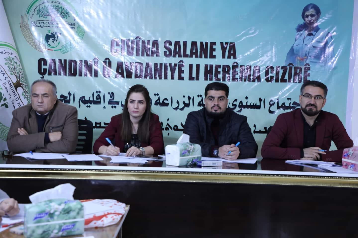 عقدت هيئة الزراعة والري في إقليم الجزيرة اجتماعها السنوي بحضور الرئاسة المشتركة لهيئة الزراعة والري في مقاطعة الجزيرة ونوابها، نائب المجلس التنفيذي في مقاطعة الجزيرة، اقتصاد المرأة المديرية العامة للبحوث العلمية الزراعية لشمال وشرق سوريا، شركة تطوير المجتمع الزراعي، المؤسسة العامة لاكثار البذار، اتحاد الفلاحين، لجنتي الاقتصاد في مقاطعتي قامشلو و الحسكة، المديريات المركزية في الهيئة ومديريات الزراعة والري في النواحي.