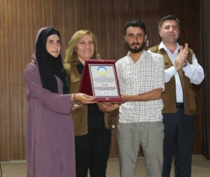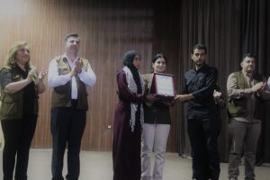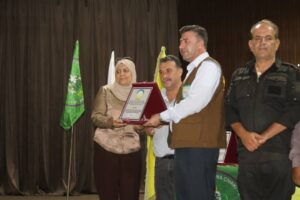 بعدها وزعت الدروع التكريمية من قبل الإدارة الذاتية على المسؤولين على مراكز قوات حماية المجتمع في كافة مدن مقاطعة الجزيرة.