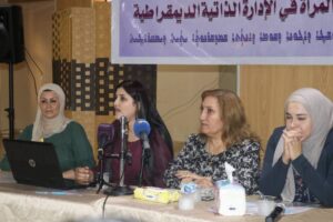 أدارت الندوة الحوارية كل من السيدة هويدة محمد نائبة هيئة المرأة والسيدة فيفيان بحو اوسي رئيسة مجلس التنفيذي و السيدة اريا ملا أحمد رئيسة مجلس التشريعي.