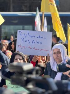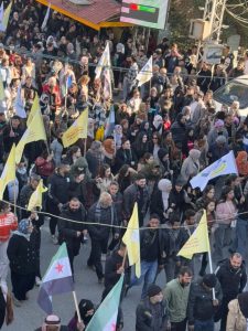 Di van meşan de tevî ala serxwebûnê, alên Rêveberiya Xweseriya Demokratîk a Bakur û Rojhilatê Sûriyê û QSD’ê hatin hildan.