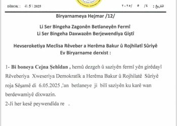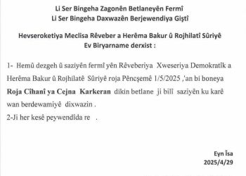 Encûmena Rêvebir Şandek Rêveberiya xweser a li Cizîrê bi gereka koça dawî ya Serî Serya Onder xwest by RXD May 5, 2025