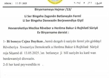 Encûmena Rêvebir Daxuyanî ji Rêveberiya Xweseriya Demokratîk a Herêma Bakur û Rojhilatê Sûriyê by RXD May 14, 2025