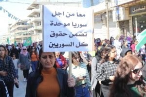 Îro li bajarê Qamişlo meşa jina a ji aliyê Kongra Star di bin dirûşmeya “Em ti destûreke ku mafê jinan û pêkhateyên wê qebûl nakin”weke nepejrandina dûrxistina mafên jinan ji destûra Sûriyê ya ku ji aliyên hikûmeta demkî ve hatiye dayin.