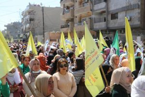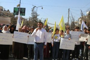 Rêveberiya Xweser li Kontona Cizîrê îro li bajarê Qamişlo xwepêşandanek girseyî li dar xist ji bo redkirina daxuyaniya destûrî ya hikûmeta demkî ya Şamê.