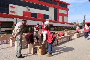 Bi însiyatîfa gel û koordînasyona bi Heyva Sor a Kurd re, karwanê alîkariyên mirovî gihişte Reqayê û dê berê xwe bide berava Sûriyê
