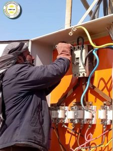 - Şopandina xeletiyên navendên veguheztina erdê li bajarê El-Şeddadî û vegerandina xetên xizmetguzariyê.