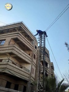 - Temîrkirina xeletiyên di torê de: Atolyeyan têlên şikestî li gelek deveran rakirin, di nav de trafoyên li “El-Tela’ih, Ebû Sihêl, û El-Bûxetab El-Cedîde”, da ku berdewamiya elektrîkê ji mal û dezgehan re misoger bikin.