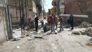 Di vê çarçoveyê de xetên sereke yên kanalîzasyon û ava bahozên nav taxa leşkerî bi kar û barên endazyarî û hêza mirovî, di bin çavdêriya rasterast a qeymeqamtiyê û serokatiya hevbeş a şaredariyê de hatin rakirin. Di çarçoveya amadekariyên xebatên qîrê yên li taxan de, armanc ew e ku zuhakirina avê baştir bikin.