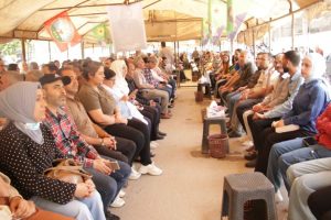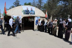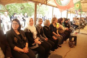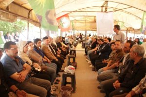 Ji demjimêrên serê sibehê ve bi sedan şêniyên bajar û gundên kantona Cizîrê ber bi kon ve çûn sersaxiyê. ku li bajarê Qamişlo hatiye vedan û hevxemiya xwe anîn ziman û spasiya têkoşîna siyasî ya kesayetê nemir kirin.