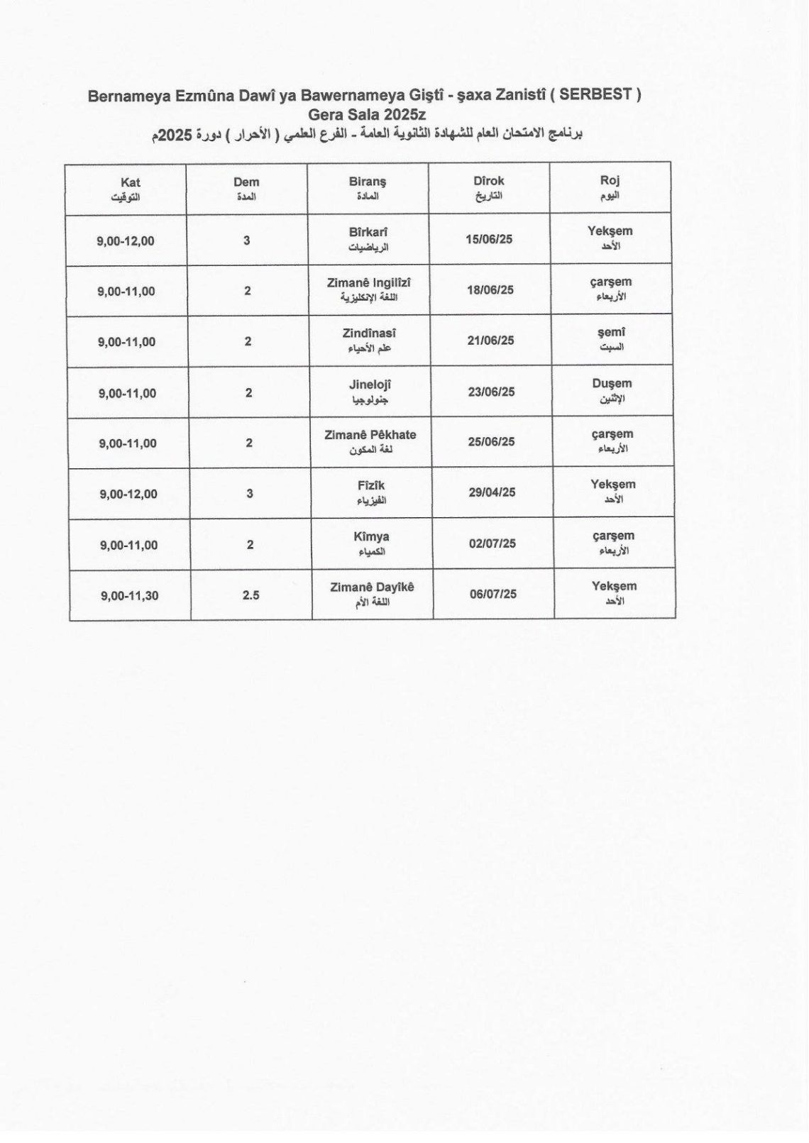 Bernameya ezmûna qonaxên amadehî û navîn bi şaxên xwe zanistî û wêjeyî di tabloya pêvekirî de hatiye nîşandin <img class="alignnone size-medium wp-image-12453" src="https://rxd-cezire.net/ku/wp-content/uploads/2025/05/495328731_122129885438805015_3371872752067121536_n-212x300.jpg" alt="" width="212" height="300" /> <img class="alignnone size-medium wp-image-12454" src="https://rxd-cezire.net/ku/wp-content/uploads/2025/05/495646953_122129885396805015_196346790396828077_n-212x300.jpg" alt="" width="212" height="300" /> <img class="alignnone size-medium wp-image-12455" src="https://rxd-cezire.net/ku/wp-content/uploads/2025/05/497504045_122129885480805015_7763980610973500782_n-212x300.jpg" alt="" width="212" height="300" />