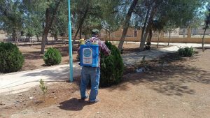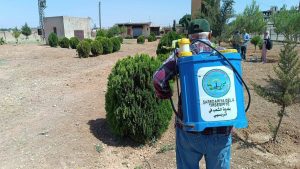 Li bajarê Tirbespiyê jî beşa Jîngehê piştî dîtina belavbûna kêzikên ziyandar û nîşanên nexweşiyê li ser hinek daran, dest bi rijandina dermanan li ser darên gulîstanan bi giştî kir.
