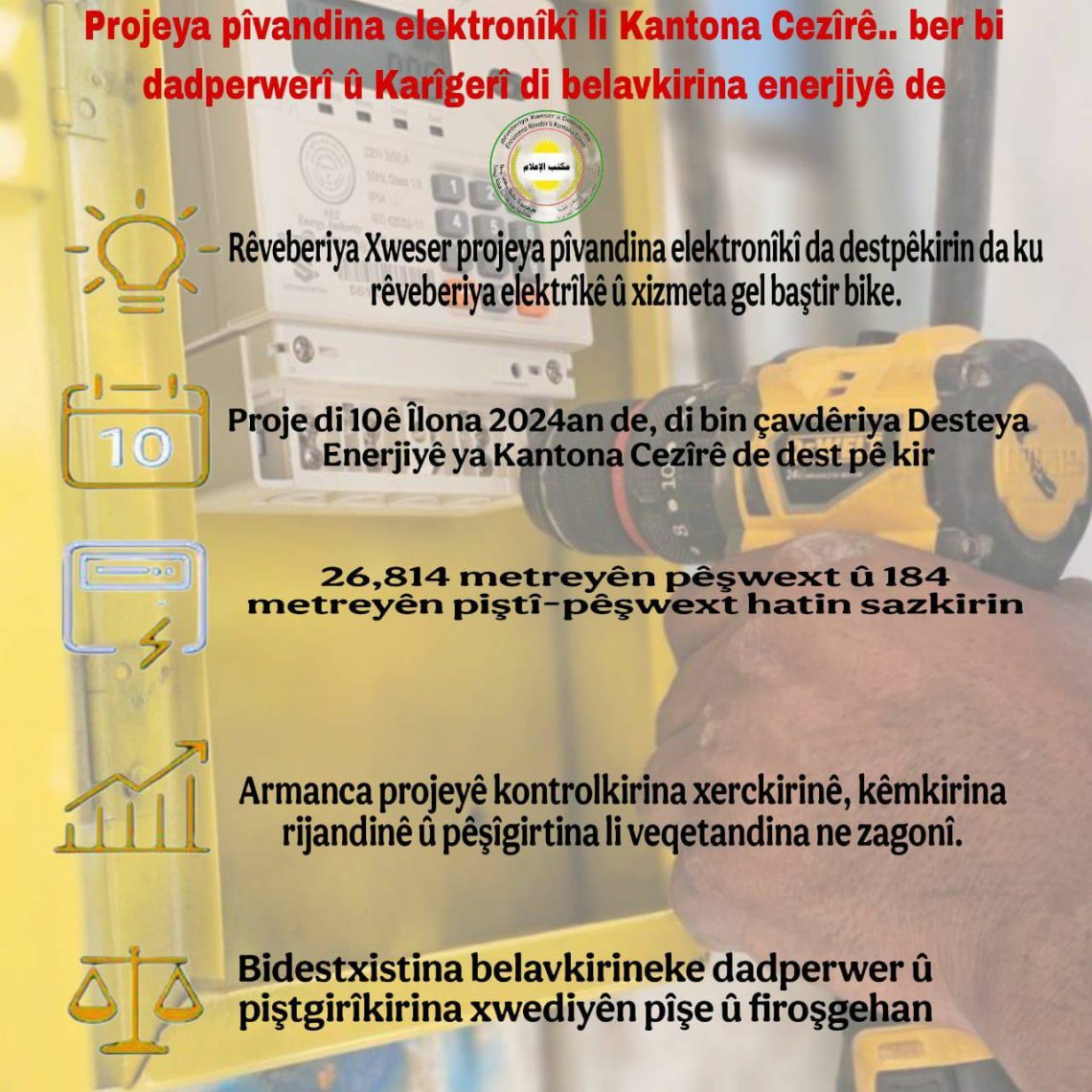 Projeya pîvandina elektronîkî li Kantona Cezîrê.. ber bi dadperwerî û Karîgerî di belavkirina enerjiyê de <img class="alignnone size-medium wp-image-14968" src="https://rxd-cezire.net/ku/wp-content/uploads/2025/08/536271735_122146187570805015_3818224706103810342_n-300x300.jpg" alt="" width="300" height="300" />