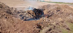 Çalek mezin kola, hemû lawirên mirî berhev kirin û avêtin çalê, mazot li ser wan rijand û şêwitandin da Ku bi awayekî paqij werin avêtin û zirarê nedin jîngehê, piştî ku agir bi tevahî hate vemirandin, wan çal bi tevahî bi axê veşart.