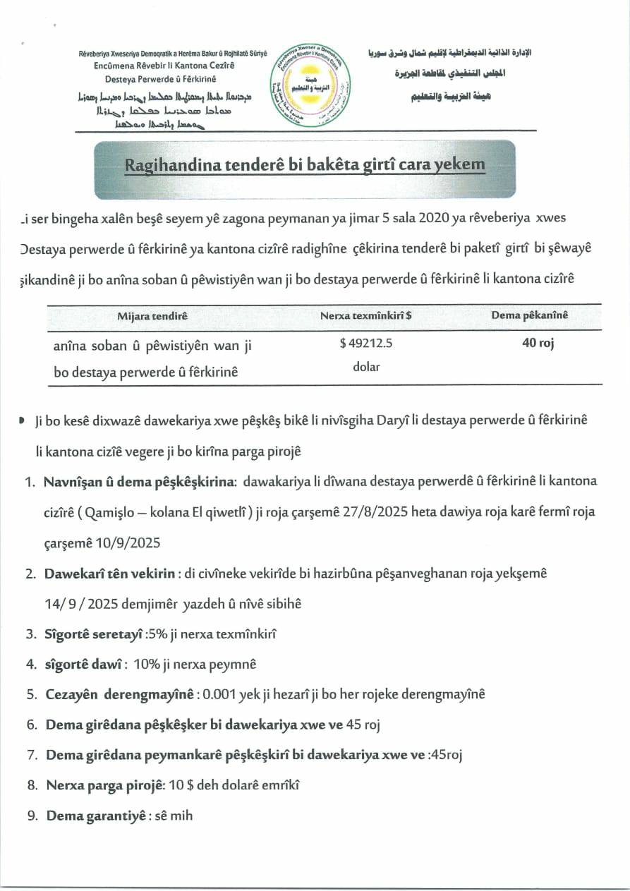 #Îhaleya ji bo Desteya Perwerdeyê <img class="alignnone size-medium wp-image-15153" src="https://rxd-cezire.net/ku/wp-content/uploads/2025/08/540676431_122147632556805015_8872573774989811117_n-212x300.jpg" alt="" width="212" height="300" /> <img class="alignnone size-medium wp-image-15154" src="https://rxd-cezire.net/ku/wp-content/uploads/2025/08/540370009_122147632598805015_8633555776533393321_n-212x300.jpg" alt="" width="212" height="300" /> <img class="alignnone size-medium wp-image-15155" src="https://rxd-cezire.net/ku/wp-content/uploads/2025/08/540227493_122147632640805015_6853664593390371182_n-212x300.jpg" alt="" width="212" height="300" />