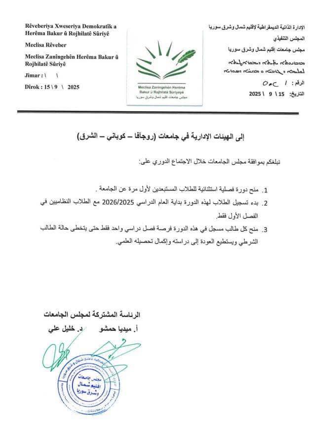 <div dir="auto">Derfetek ji bo xwendekarên ku cara yekê hatibin dûrxistin</div> <div dir="auto"><span class="html-span xdj266r x14z9mp xat24cr x1lziwak xexx8yu xyri2b x18d9i69 x1c1uobl x1hl2dhg x16tdsg8 x1vvkbs"><a class="x1i10hfl xjbqb8w x1ejq31n x18oe1m7 x1sy0etr xstzfhl x972fbf x10w94by x1qhh985 x14e42zd x9f619 x1ypdohk xt0psk2 x3ct3a4 xdj266r x14z9mp xat24cr x1lziwak xexx8yu xyri2b x18d9i69 x1c1uobl x16tdsg8 x1hl2dhg xggy1nq x1a2a7pz xkrqix3 x1sur9pj x1fey0fg x1s688f" tabindex="0" role="link" href="https://www.facebook.com/hashtag/zan%C3%AEngeha_rojava?__eep__=6&__cft__[0]=AZUom5GXhF5XTTiAAoNCj5WNUZ-g89sEknJNEHFhzoNjejx2dG7qR9jt0ZWnkqm_EWwnA6RMmAQz86aSrz_UFgwWZzmDCQNXx58TgFKUlKJLZOub1EHA5DoGwAbckZeWO_Uqryk5UBmTexe_zrzB7Iv0w6i896Y9iB38VZu_1hA5yw&__tn__=*NK-R">#Zanîngeha_Rojava</a></span></div> <div dir="auto"><img class="alignnone size-medium wp-image-15850" src="https://rxd-cezire.net/ku/wp-content/uploads/2025/09/545846573_122150601638805015_769612695736474407_n-213x300.jpg" alt="" width="213" height="300" /></div>