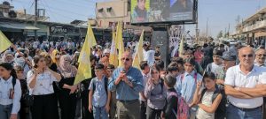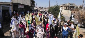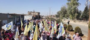 Gelê bajarê Dirbêsiyê, gundên derdora wê û bajarokê Çil Axa îro xwepêşandanek girseyî ji bo piştgiriya gelê taxên Şêx Meqsûd û Eşrefiyê yên li Helebê lidarxistin.