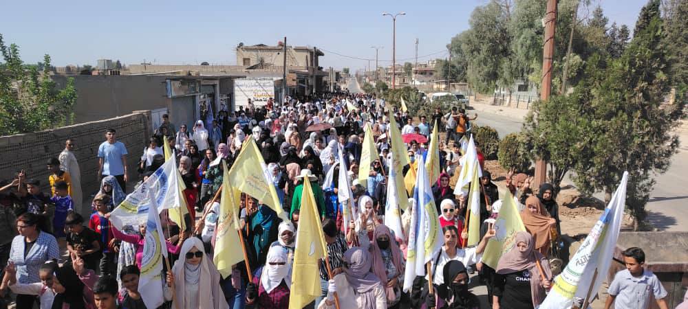 Her du xwepêşandan bi beşdariyeke berfireh ji aliyê gel ve, li gel endamên rêxistinên civaka sivîl, ku alên Hêzên Sûriya Demokratîk û Hêzên Ewlekariya Hundirîn hildigirtin, pêk hatin.