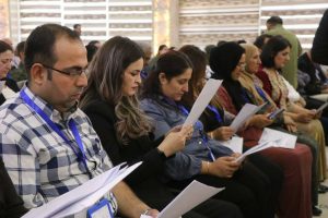 Hevserokatiya Rêveberiya Xweseriya Demokratîk a Bakur û Rojhilatê Sûriyê Xanim Evîn Siwêd û Birêz Hisên Osman, ligel hevserokatiya Encûmena Cîbcîkar a Kantona Cezîrê Xanim Vîvyan Beho Osê û Birêz Hesen Şero beşdarî konferansê bûn.