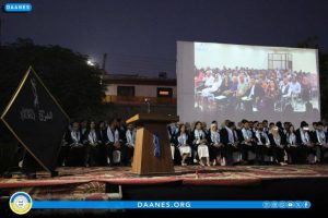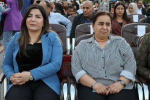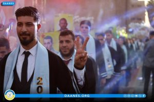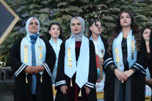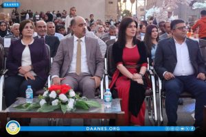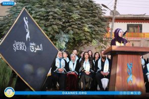 Desteya Hevserokatiya Meclisa Rêveber a Rêveberiya Xweser a Bakur û Rojhilatê Sûriyê, hevserokatiya Meclisa Zanîngehên Bakur û Rojhilatê Sûriyê, hevserokatiya Zanîngeha El-Şerq, nûnerên tevger jin, malbatên şehîdan û xwendekarên derçûyî, beşdarî merasîma derçûnê bûn.