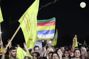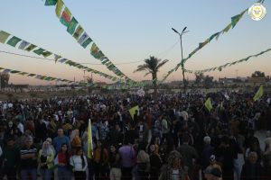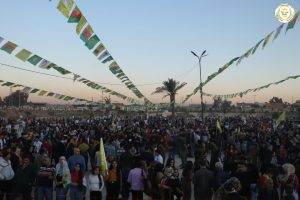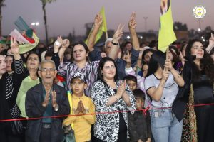 Di şahiyê de, hunermendên Safqan Orkêş, Yara Ehmed, Sîpan Agrî, û Kedr Hisên performansên hunerî pêşkêş kirin û piştgiriya xwe ji bo Hêzên Sûriya Demokratîk anîn ziman û banga xurtkirina Yekîtiya netewî kirin.