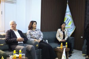 Şandek ji hunermendan Xêro Ebas, Dîno û Danîş Botan serdana baregeha Encûmena Cîbcîkar a Kantona Cezîrê kirin. Ew ji aliyê Xanim Vîvyan Beho Osê (Hevseroka Encûmena Cîbcîkar), Xanim Hemrîn Elî (Cîgira hevserokatiyê) û Xanim Firyal Çolî (Hevseroka Desteya Çandê) hatin pêşwazîkirin.