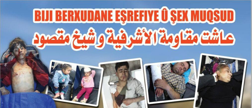 Bi hezaran şêniyên bajarê Dêrik li kantona Cizîrê, bi meşeke girseyî piştgiriya xwe ji bo berxwedana taxên Şêx Meqsûd û Eşrefiyê nîşan dan. Beşdaran topbarana hêzên “Hikûmeta Demkî” û armanckirina rasterast a li ser sivîlan şermezar kirin.