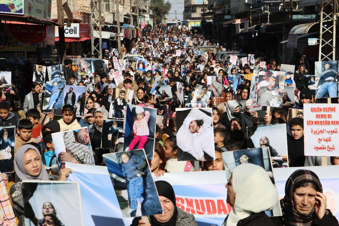 Bi sedan şêniyên Tirbespiyê li kantonê Cizîrê, bi meşeke girseyî piştgiriya xwe ji bo berxwedana taxên Şêxmeqsûd û Eşrefiyê nîşan dan. Her wiha, êrîşên komên “Hikumeta Demkî” yên li ser sivîlên wan taxan şermezar kirin