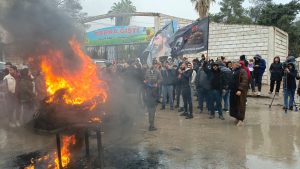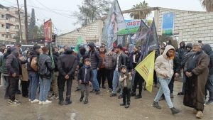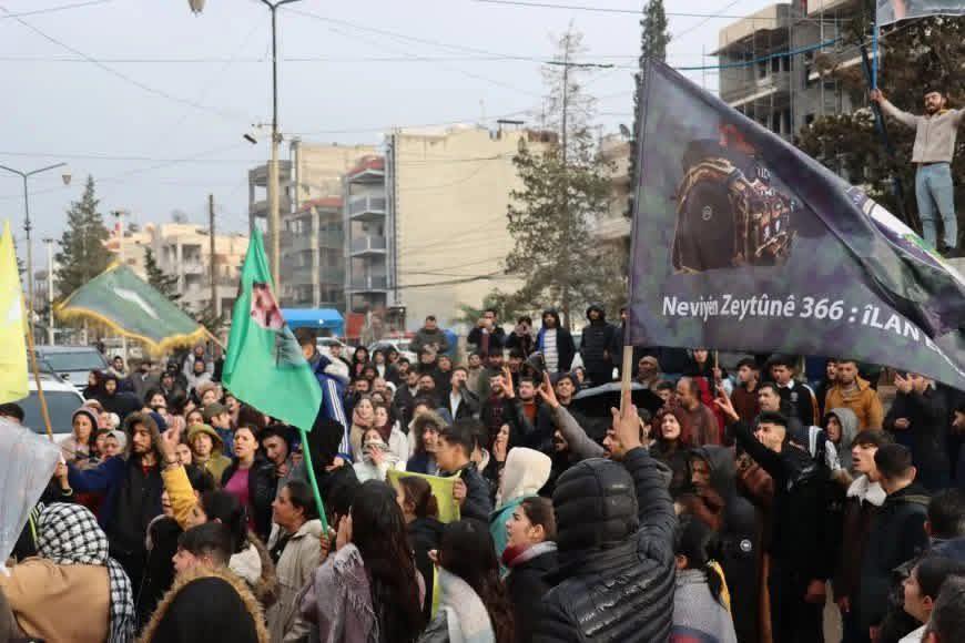 Koçberên Efrîn û Şehbayê Li ber avahiya (UNHCR) a li Qamişlo komkujiyên çeteyên ‘Hikûmeta Demkî’ yên li dijî gelê Şêxmeqsûd, Eşrefiye û Benî Zêd şermezar kirin û piştgiriya xwe ji bo berxwedana wan nîşan dan.
