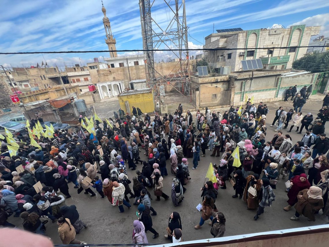 Bi hezaran şêniyên bajarê Tirbespiyê û gundewarên wê, bi meşeke girîng sûcên ‘Hikûmeta Demkî’ yên li dijî sivîlên taxên Şêxmeqsûd û Eşrefiyê şermezar kirin. Beşdaran di meşê de piştgiriya xwe ji bo berxwedana dîrokî ya gelê Helebê û QSD’ê nîşan dan û tekez kirin ku ew ê li dijî her cure êrîşî, bibe yek deng û yek dest.